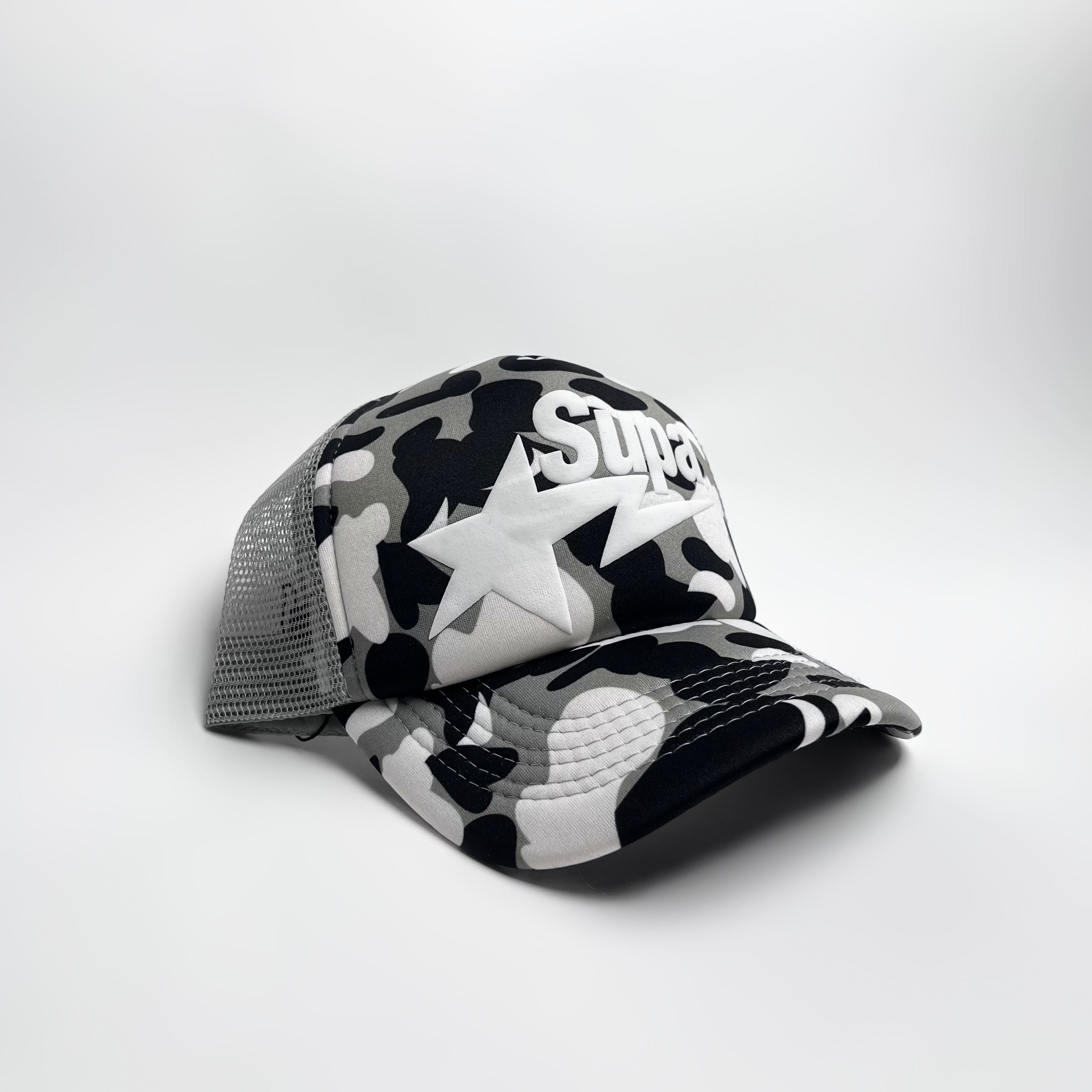 Supa Puff Sta' Trucker Hat - Gray Camo